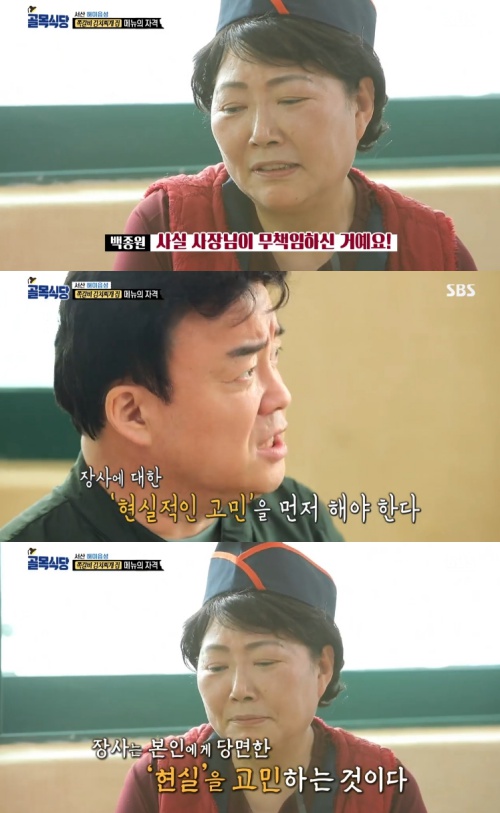 더 나아가 백종원은 "'(음식이) 안 나가면 어떻게 하지', '갑자기 손님이 많이 들어오면 어떻게 하지'까지 생각을 해야 한다. 사장님의 사업인데 그런 고민 없이 하면 되냐. 내가 떠서 드리는 게 아니다. 사장님이 고민해서 찾으셔야 한다"라며 일침을 가했다.