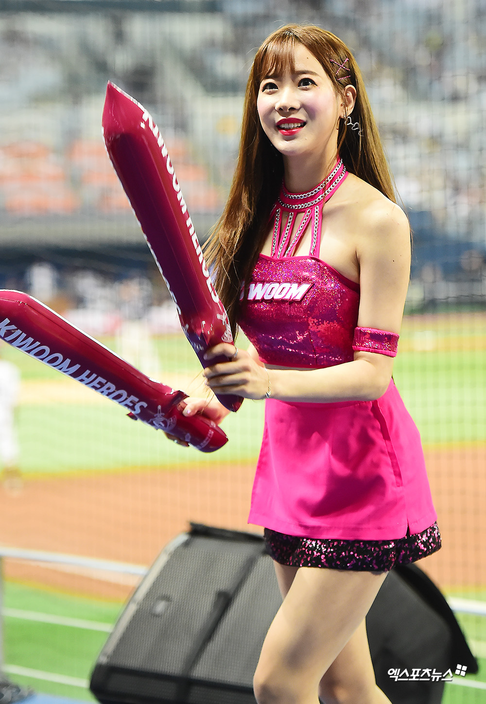 [엑스포츠뉴스 고척, 김한준 기자] 23일 오후 서울 구로구 고척스카이돔에서 열린 '2019 신한은행 MY CAR KBO리그' 두산 베어스와 키움 히어로즈의 경기, 키움 치어리더 김한나가 열띤 응원을 선보이고 있다.