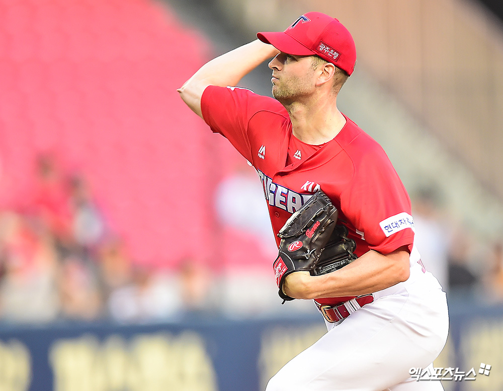 [엑스포츠뉴스 잠실, 김한준 기자] 24일 오후 서울 송파구 잠실야구장에서 열린 '2019 신한은행 MY CAR KBO리그' KIA 타이거즈와 LG 트윈스의 경기, 1회말 KIA 선발투수 터너가 공을 힘차게 던지고 있다.