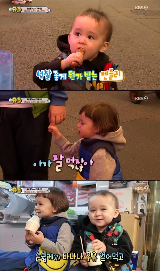 [엑스포츠뉴스 원민순 기자] 샘 해밍턴의 아들 벤틀리가 마장동 고기 시식코너를 접수했다.