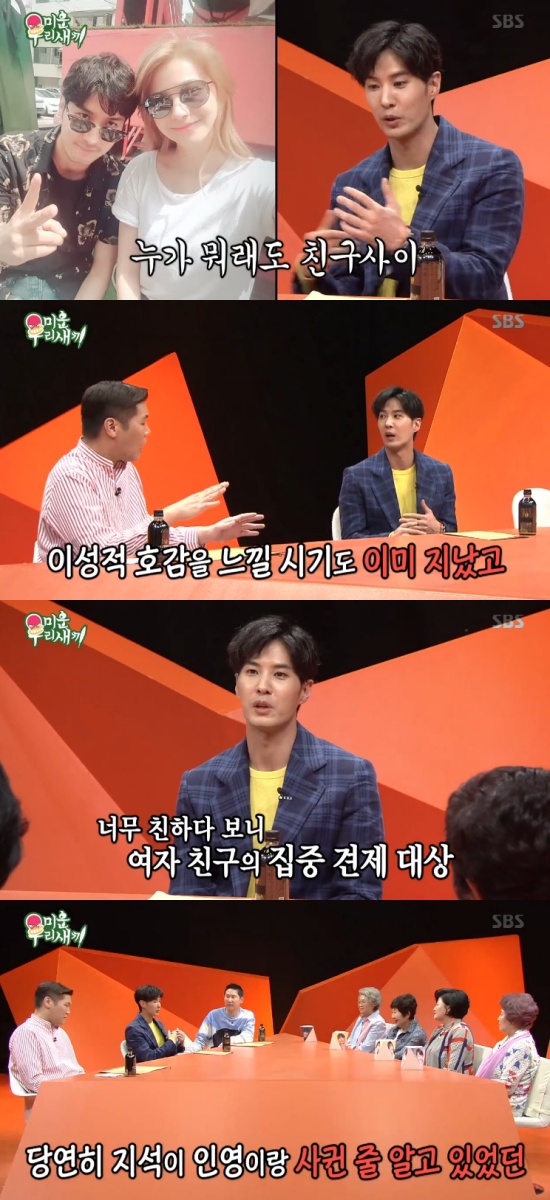 이어 김지석은 "처음에는 동료였다가 완전 친구가 됐다. 가끔 연애할 때 여자친구는 다른 분들은 괜찮은데 인영 씨는 견제하는 느낌이다. 저는 조금 즐긴다"라며 덧붙였다.