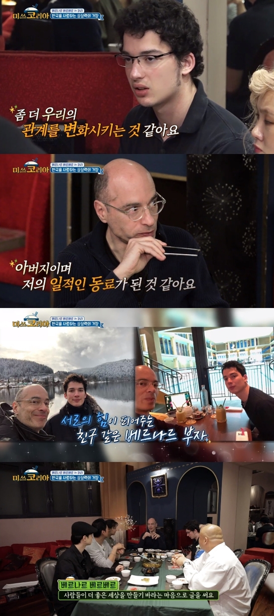 이날 멤버들이 요리를 만들기 위해 고군분투하던 도중 베르나르 베르베르가 아들과 함께 등장했다. 베르나르 베르베르는 첫째 조나단에 대해 "내 아들도 같은 작가다. 영적인 것에 대한 소설을 쓰고 있다"고 전했다.