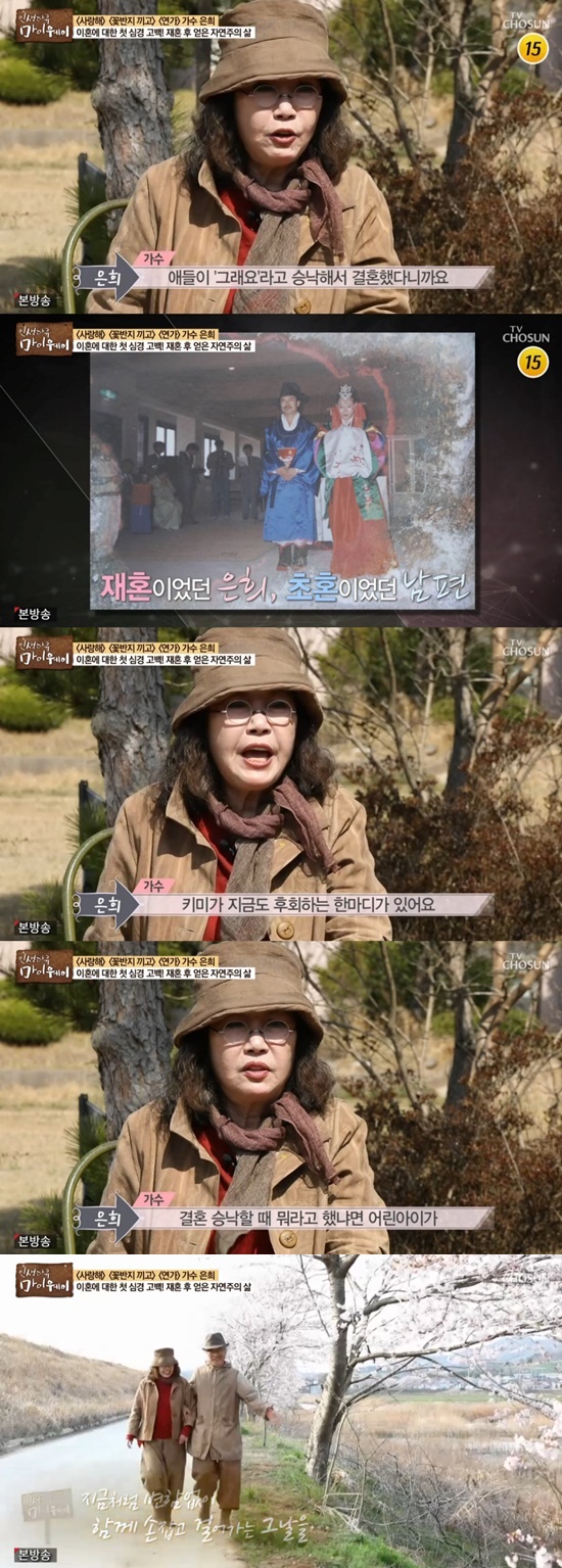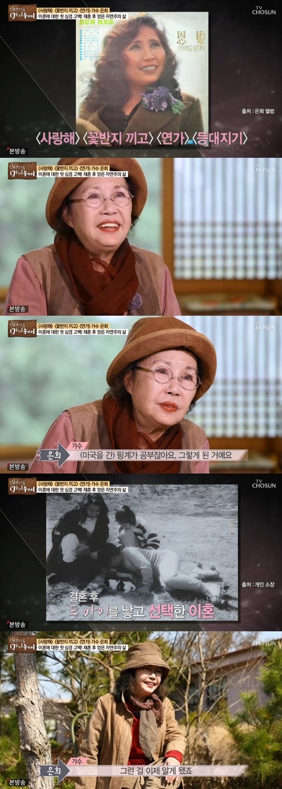 미국에서 삶은 녹록지 않았다. 미국에서 비밀스러운 결혼 후 두 아이를 낳았지만 끝내 이혼을 선택했다. 은희는 "누구에게나 과거라는 건 없어지지 않잖나. 그래서 하나 배운 게 하나를 얻기 위해서는 하나를 버려야 한다는 거다. 그런 걸 이제 알게 됐다"고 했다.