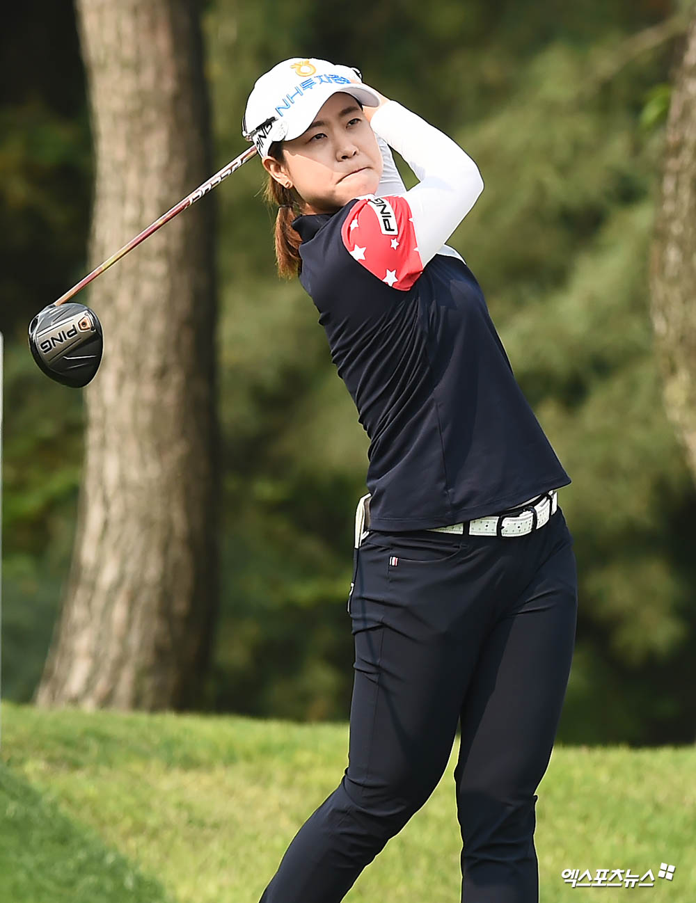 [엑스포츠뉴스 수원, 윤다희 기자] 12일 오전 경기도 수원 구갈동 수원컨트리클럽(수원CC)에서 열린 ‘2019 NH 투자증권 레이디스 챔피언십(총상금 7억 원, 우승상금 1억4천만 원)’ 4라운드 경기, 박민지가 1번홀 티샷을 날리고 있다.