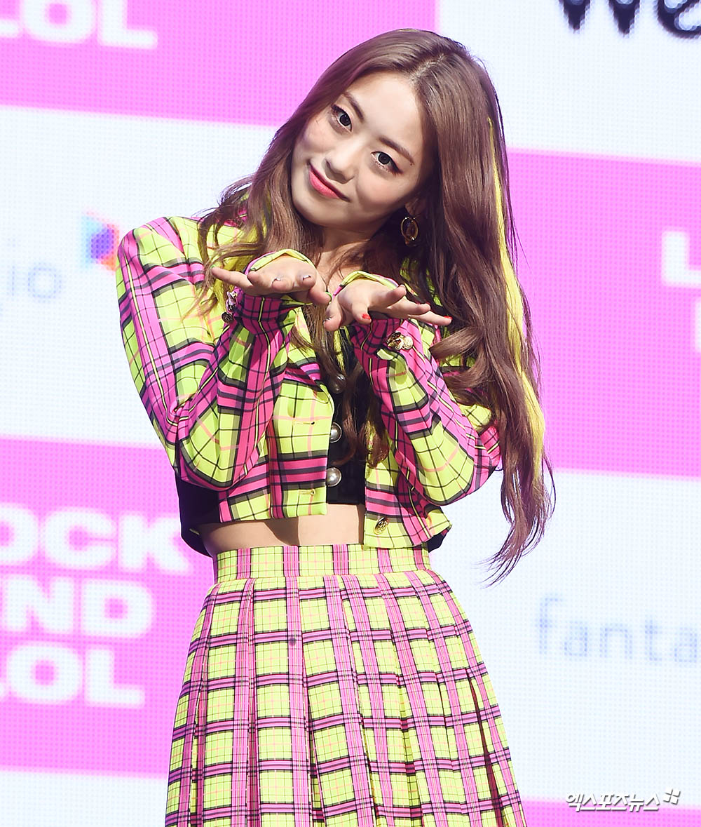 [엑스포츠뉴스 윤다희 기자] 14일 오후 서울 한남동 블루스퀘어에서 열린 위키미키(Weki Meki) 두 번째 싱글 앨범 'LOCK END LOL(락앤롤)’ 발매 기념 쇼케이스에 참석한 위키미키 루아가 포토타임을 갖고 있다.