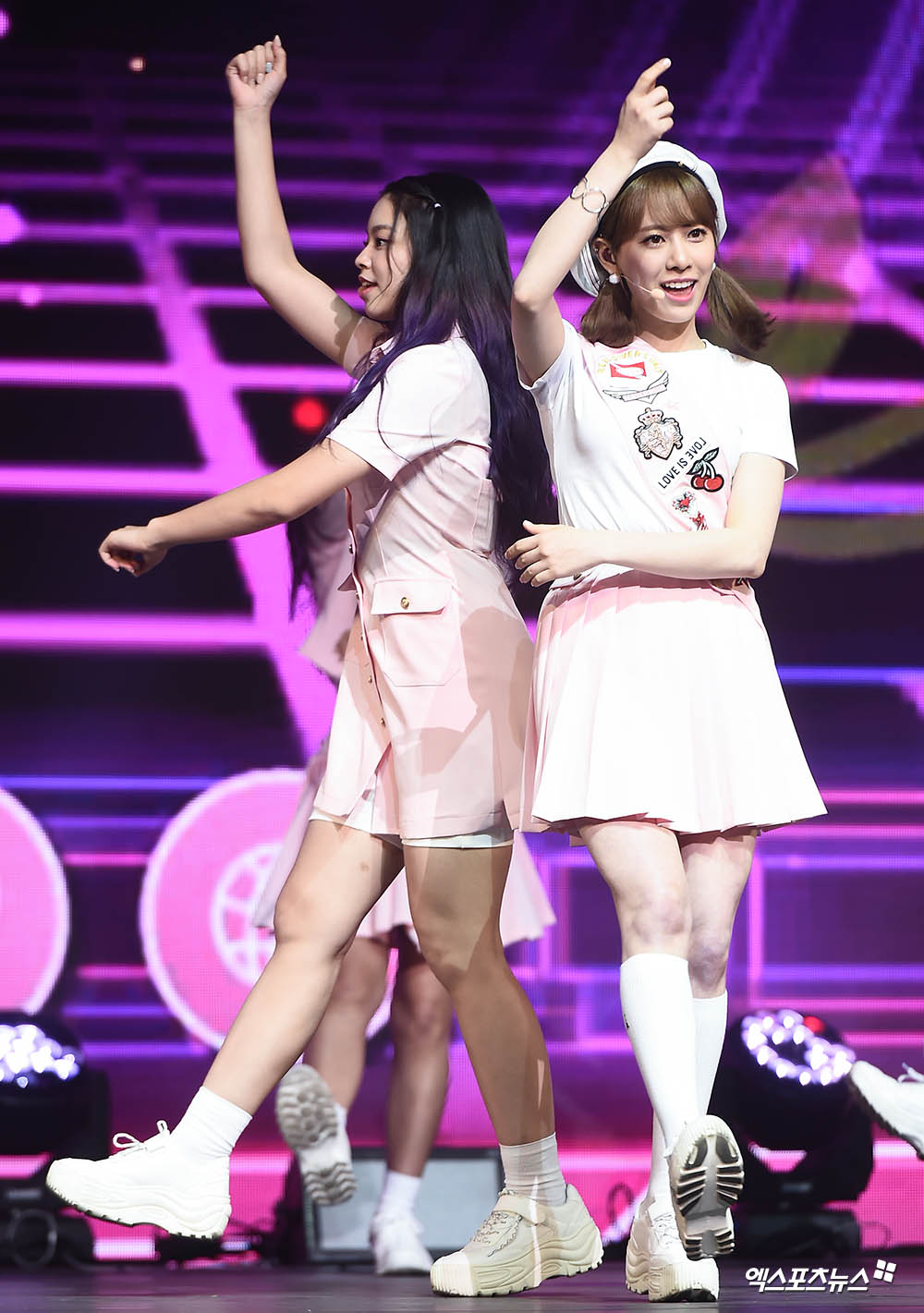 [엑스포츠뉴스 윤다희 기자] 22일 오후 서울 광장동 예스24라이브홀에서 열린 걸그룹 체리블렛(Cherry Bullet) 두 번째 싱글앨범 ’러브 어드벤처(LOVE ADVENTURE)’ 발매 기념 쇼케이스에 참석한 체리블렛 린린, 보라가 멋진 무대를 선보이고 있다.