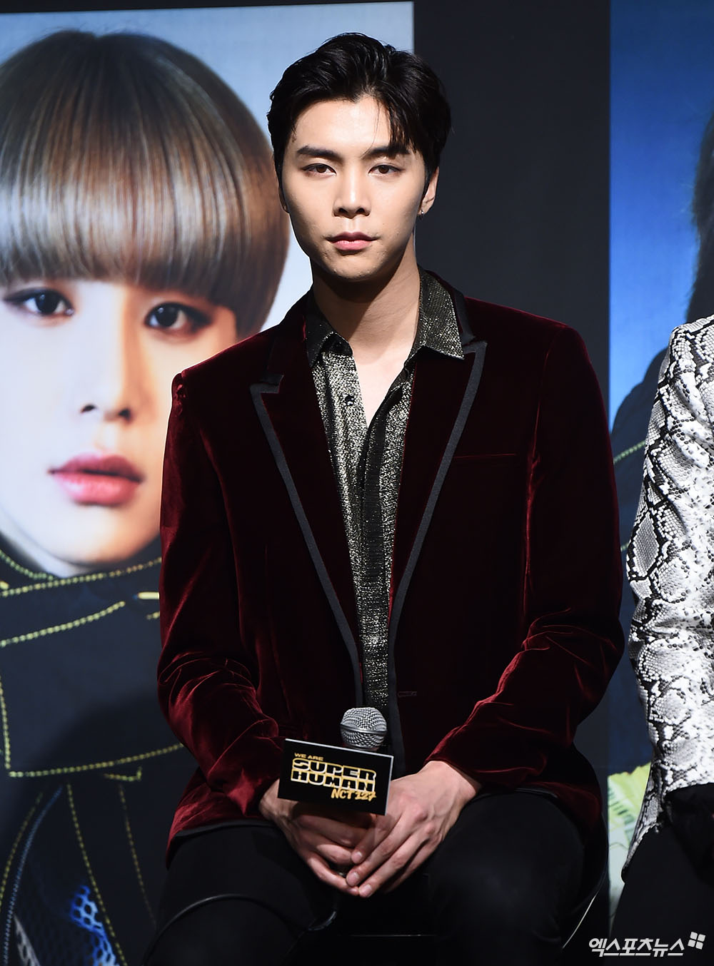 [엑스포츠뉴스 박지영 기자] 24일 오후 서울 여의도동 콘래드 호텔에서 그룹 NCT 127 네 번째 미니앨범 'WE ARE SUPERHUMAN' 제 작발표회가 열렸다. 이날 행사에 참석한 NCT 127 쟈니가 취재진의 질문을 듣고 있다.