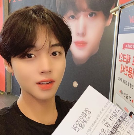 박지훈은 30일 자신의 인스타그램에 영화관에서 촬영한 사진을 게재했다. 공개된 사진 속 박지훈은 영화 입장권을 든 채 카메라를 바라보고 있다.