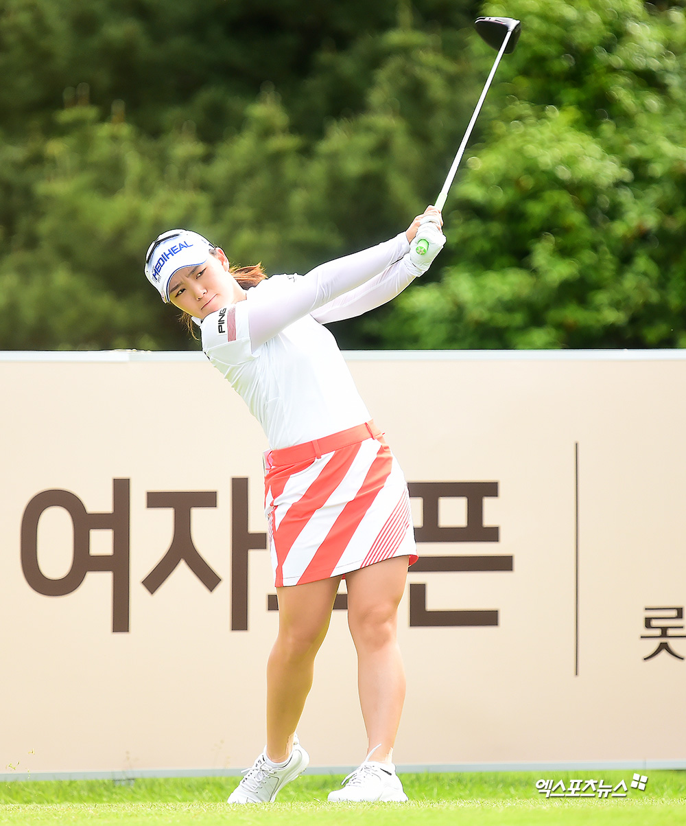 [엑스포츠뉴스 제주, 김한준 기자] 2일 제주특별자치도 서귀포시 롯데스카이힐 제주컨트리클럽(파72 / 6,365야드)에서 열린 '제9회 롯데 칸타타 여자오픈(총상금 6억원, 우승상금 1억 2천만원)' 최종라운드 경기, 이다연이 1번홀 티샷을 날리고 있다.