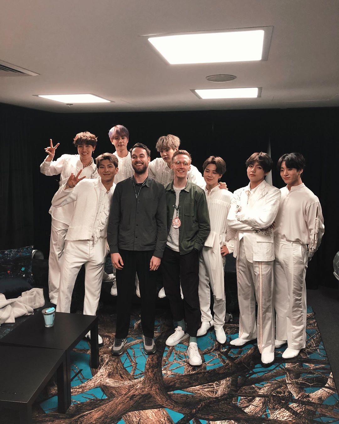 공개된 사진 속 혼네와 방탄소년단은 콘서트 대기실에서 사진을 찍고 있는 모습이다. 혼네는 방탄소년단의 런던 웸블리 스타디움 콘서트를 찾아 만남을 가졌다.
