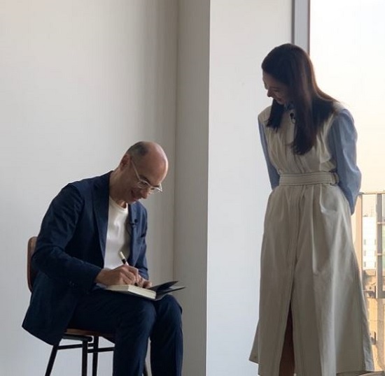 공개된 사진에는 베르나르 베르베르 작가에게 사인을 받고 있는 신세경의 모습이 담겨있다.