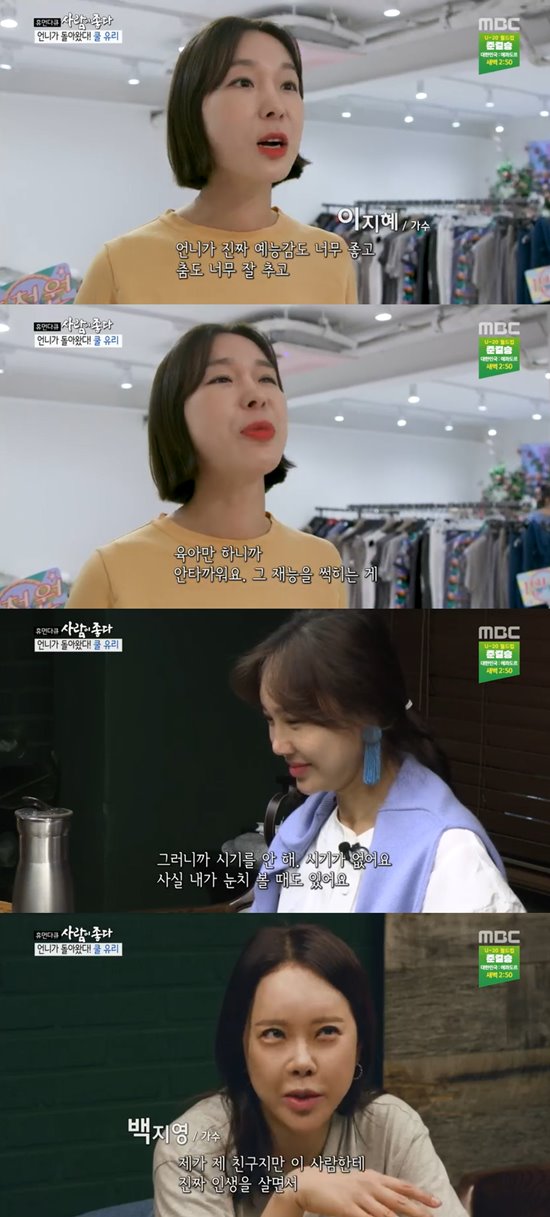 [엑스포츠뉴스 오수정 기자] '사람이 좋다' 이지혜와 백지영이 쿨 유리를 향한 애정을 보였다.