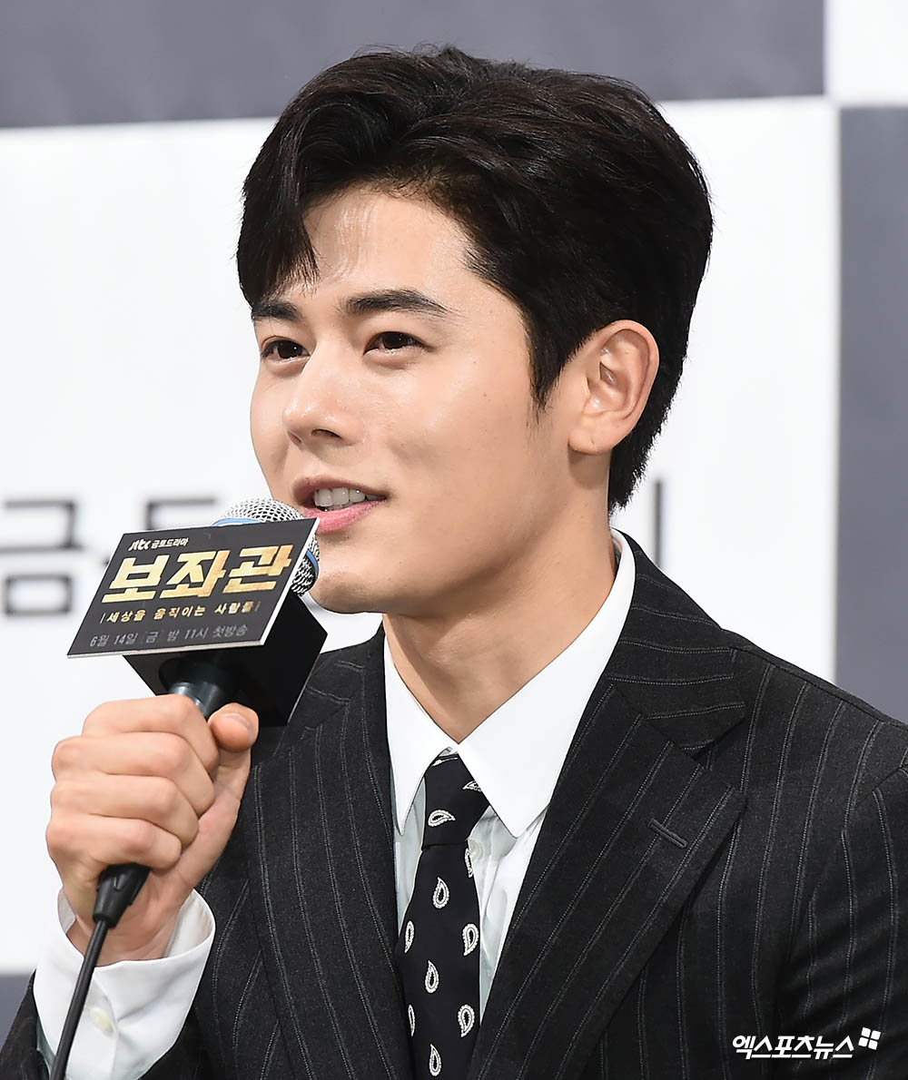 [엑스포츠뉴스 윤다희 기자] 13일 오후 서울 논현동 임피리얼팰리스에서 열린 JTBC 새 금토드라마 '보좌관 - 세상을 움직이는 사람들' 제작발표회에 참석한 배우 김동준이 인사말을 전하고 있다.