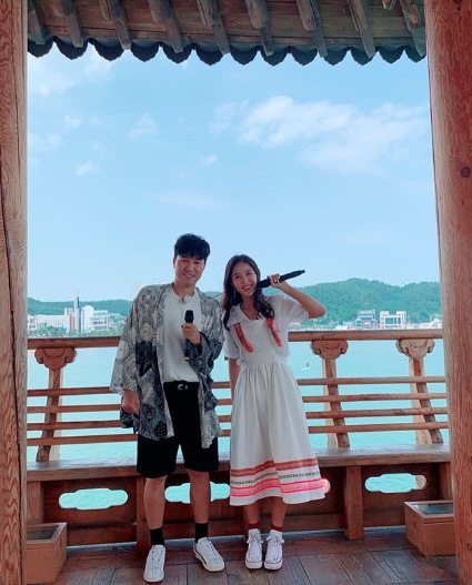 공개된 사진 속 신지와 김종민은 나란히 서서 카메라를 바라보고 있다. 비가 온 뒤 맑게 개인 파란 하늘은 물론 해맑게 웃고 있는 화기애애한 분위기의 두 사람 모습이 눈길을 사로잡는다.