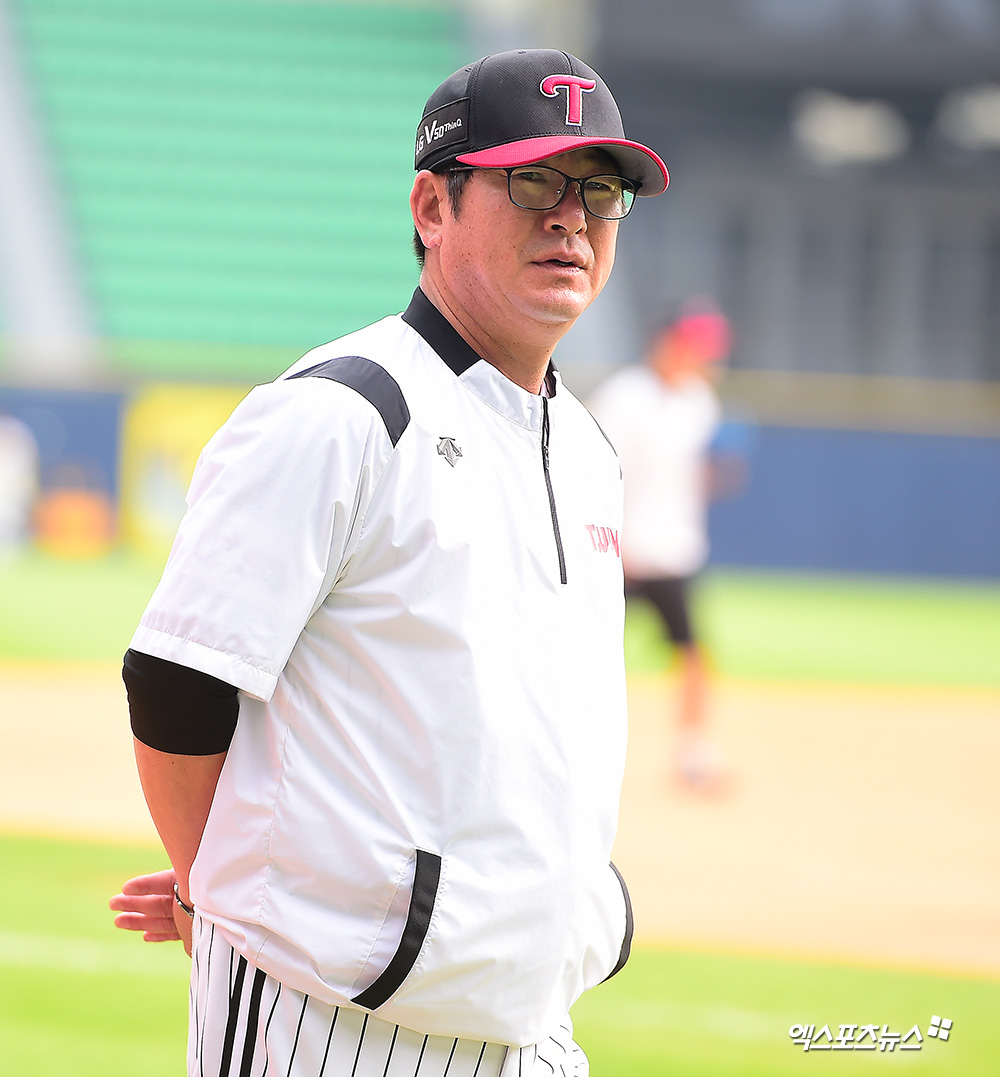 [엑스포츠뉴스 잠실, 김한준 기자] 21일 오후 서울 송파구 잠실야구장에서 열리는 '2019 신한은행 MY CAR KBO리그 KIA 타이거즈와 LG 트윈스의 경기, LG 류중일 감독이 그라운드를 둘러보고 있다.