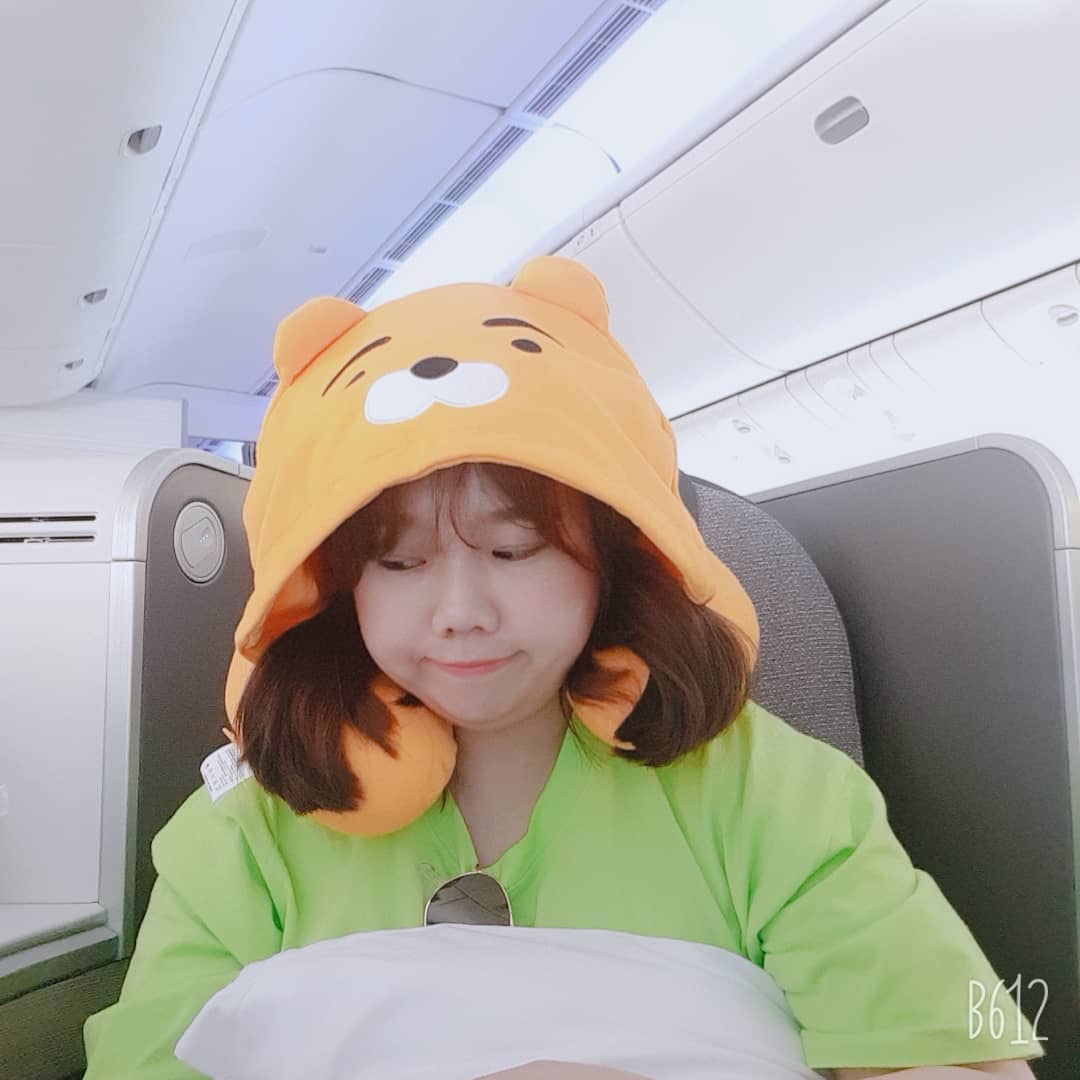 공개된 사진 속 홍현희는 비행기 안에서 캐릭터 모자를 쓰고 있는 모습이다. 홍현희의 애교 가득한 표정이 눈길을 끈다.