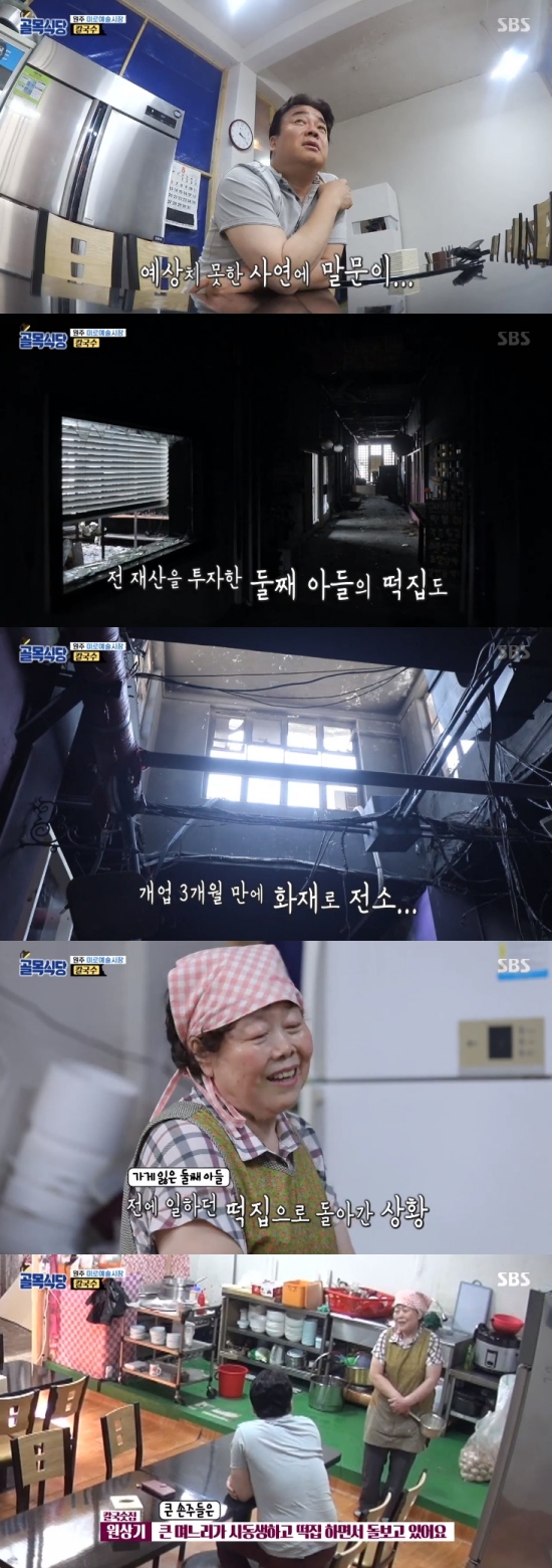 이어 칼국숫집 사장은 "둘째는 화재 난 데에 떡집을 차렸다. 거기다 몽땅 투자했는데 3개월 만에 불이 났다"라며 덧붙였고, 백종원은 "같은 건물에서 국숫집 하시고. 그런 사정이 있었냐"라며 탄식했다.