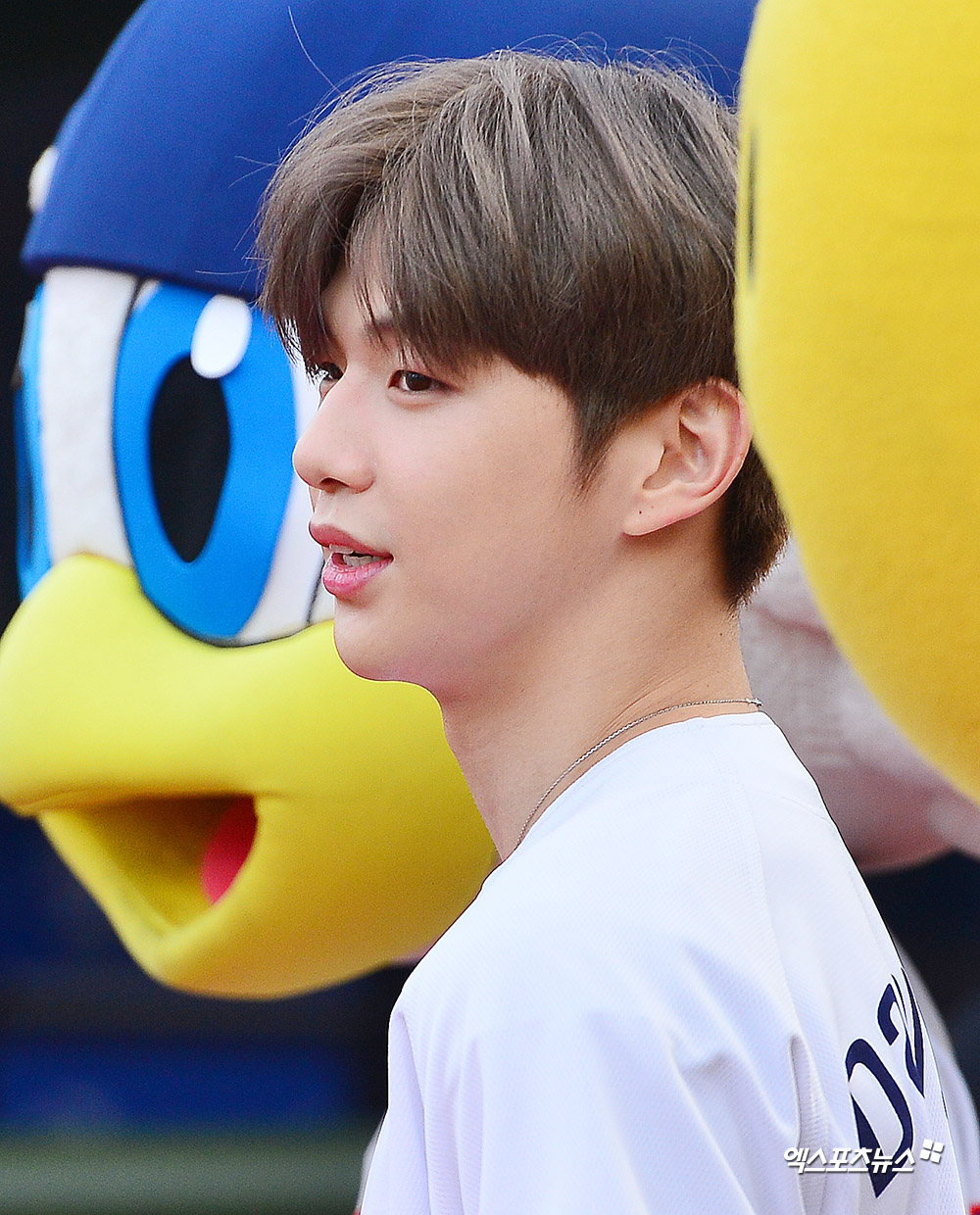 ​[엑스포츠뉴스 부산, 김한준 기자] 9일 오후 부산 동래구 사직야구장에서 열린 '2019 신한은행 MY CAR KBO리그 NC 다이노스와 롯데 자이언츠의 경기, 경기 전 가수 강다니엘이 시구에 임하고 있다.