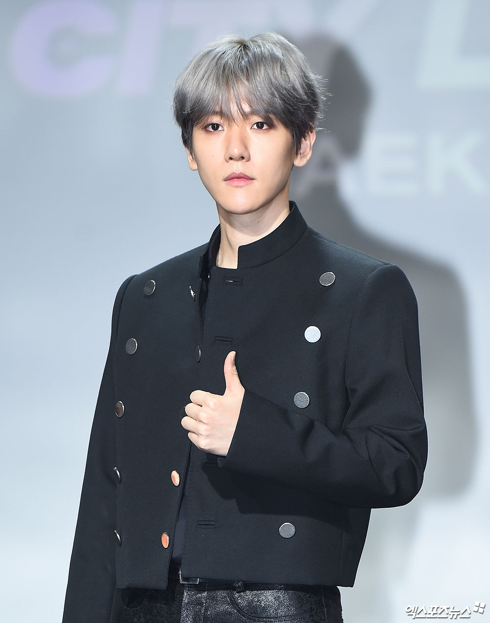 [엑스포츠뉴스 박지영 기자] 10일 오후 서울 삼성동 SAC 아트홀에서 엑소 백현 첫 솔로 앨범 'City Lights' 발매 기념 쇼케이스가 열렸다. 이날 쇼케이스에 참석한 엑소 백현이 포즈를 취하고 있다.