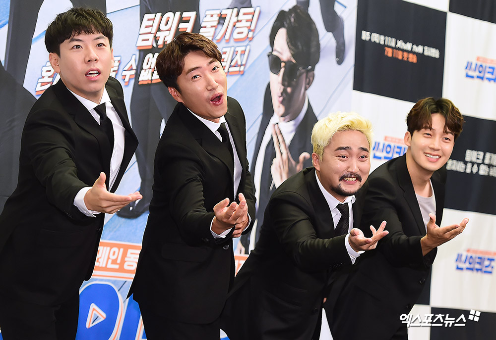 [엑스포츠뉴스 김한준 기자] 11일 오전 서울 상암동 스탠포드호텔 서울에서 열린 XtvN '씬의 퀴즈' 제작발표회에 참석한 양세찬, 장동민, 유병재, 허경환이 포토타임을 갖고 있다.