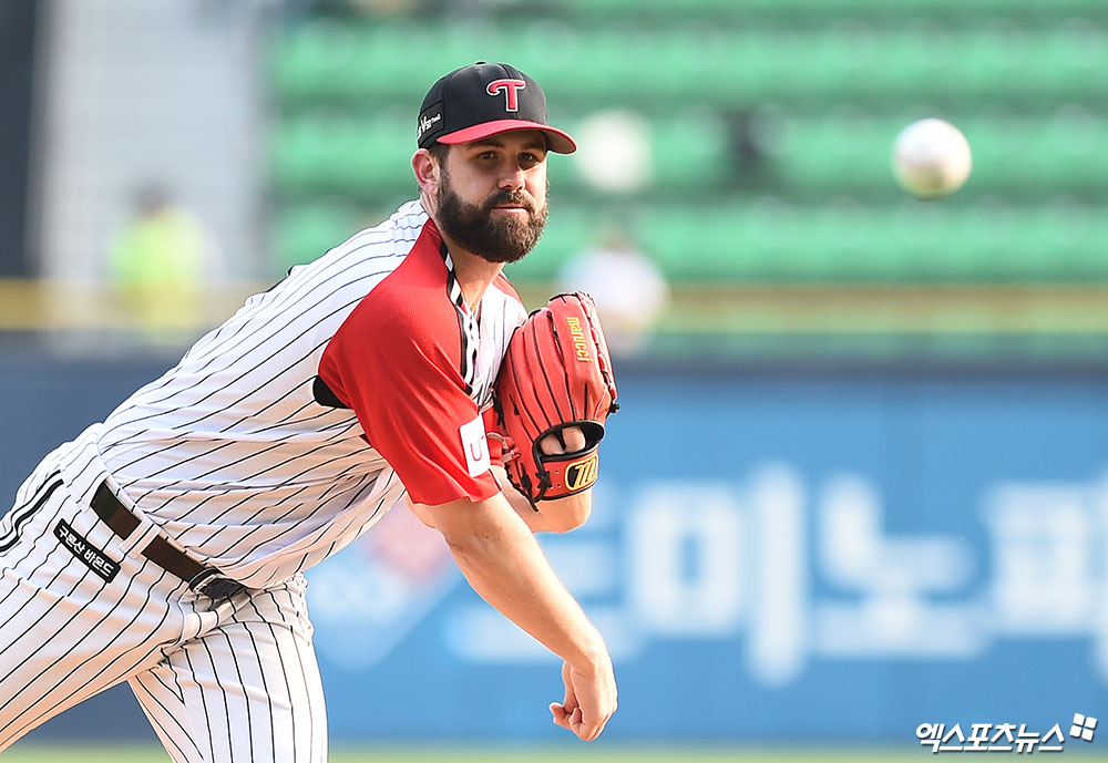 [엑스포츠뉴스 잠실, 박지영 기자] 14일 오후 서울 송파구 잠실야구장에서 열린 '2019 신한은행 MY CAR KBO리그' 삼성 라이온즈와 LG 트윈스의 경기, 1회초 무사 LG 선발투수 켈리가 역투하고 있다.