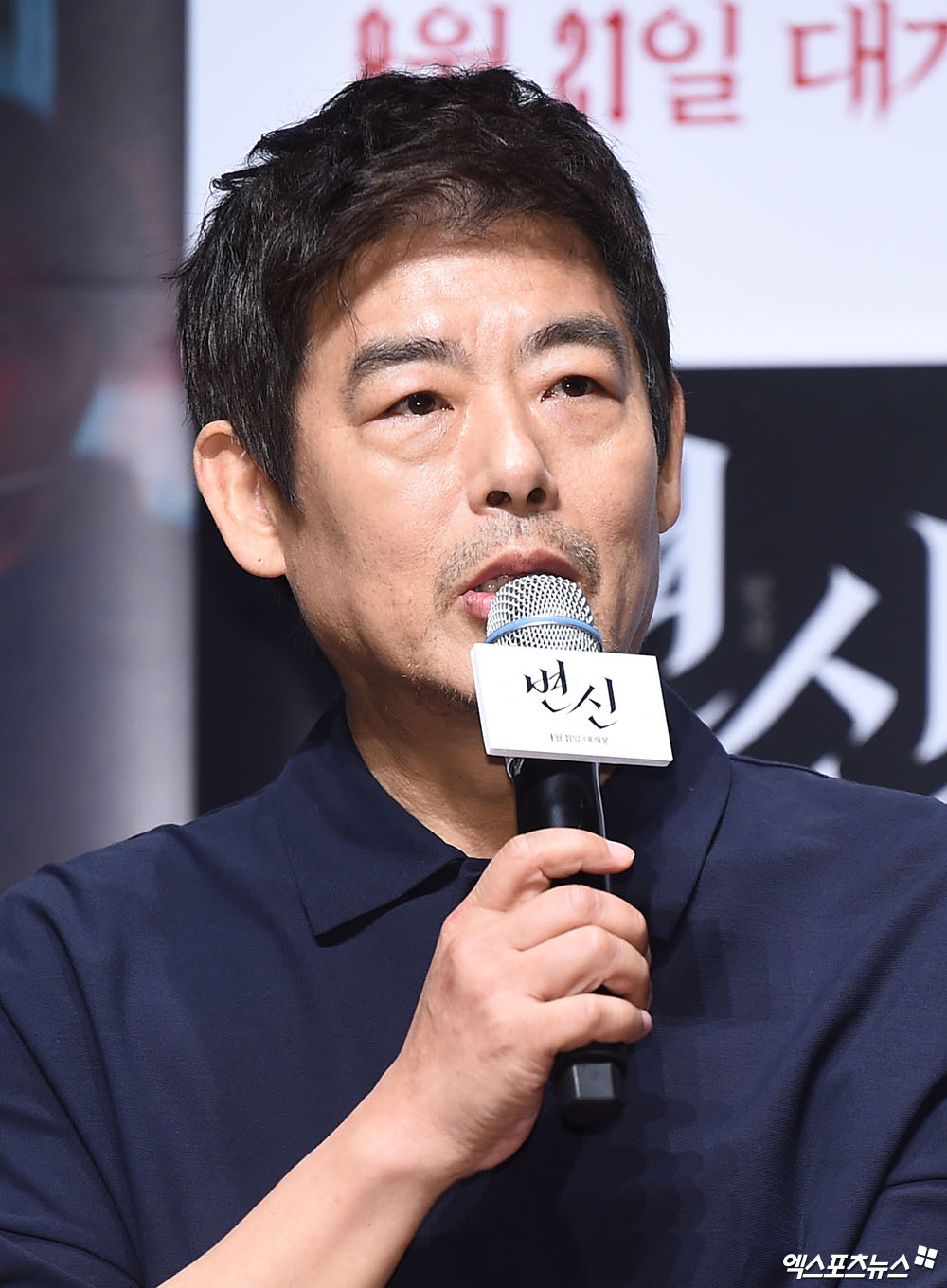 [엑스포츠뉴스 박지영 기자] 16일 오전 서울 신사동 CGV 압구정점에서 열린 영화 '변신' 제작보고회에 참석한 배우 성동일이 인사하고 있다.