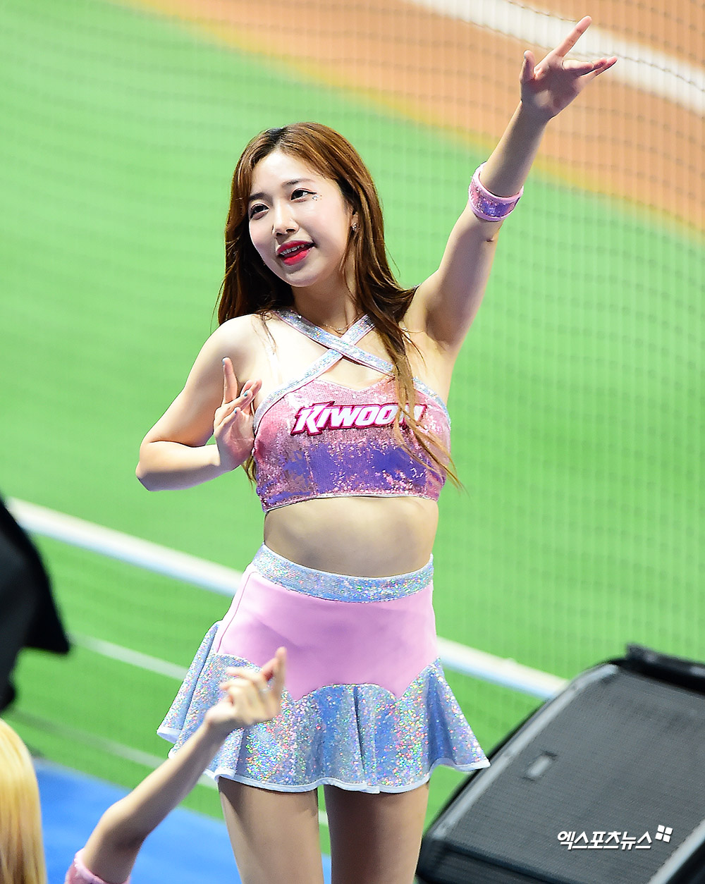 [엑스포츠뉴스 고척, 김한준 기자] 17일 오후 서울 구로구 고척스카이돔에서 열린 '2019 신한은행 MY CAR KBO리그 삼성 라이온즈와 키움 히어로즈의 경기, 키움 치어리더 박한솔이 멋진 공연을 선보이고 있다.