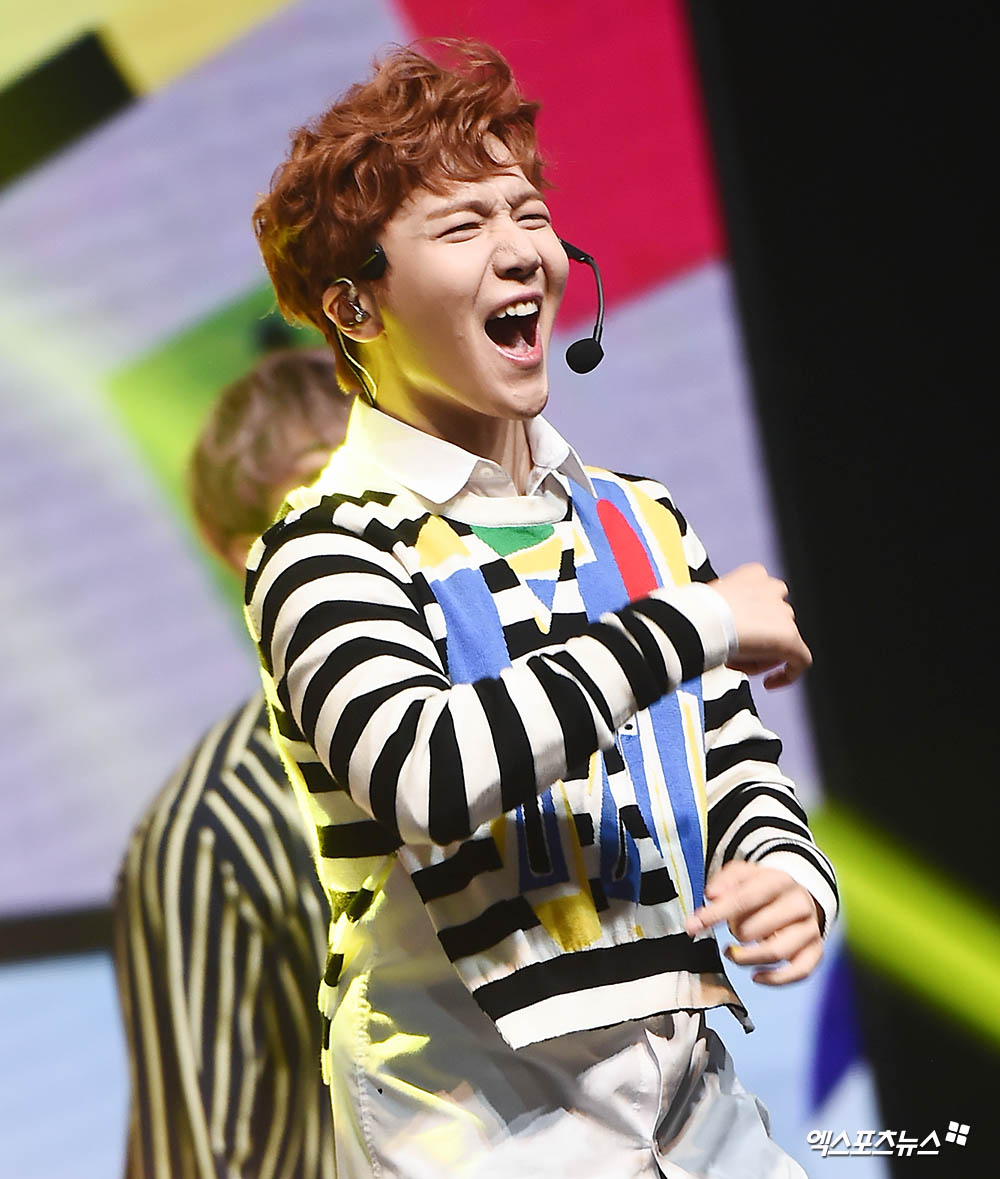 [엑스포츠뉴스 윤다희 기자] 17일 오후 서울 한남동 블루스퀘어에서 열린 그룹 펜타곤 ‘SUM(ME:R)’ 쇼케이스에 참석한 펜타곤 진호가 멋진 무대를 선보이고 있다.