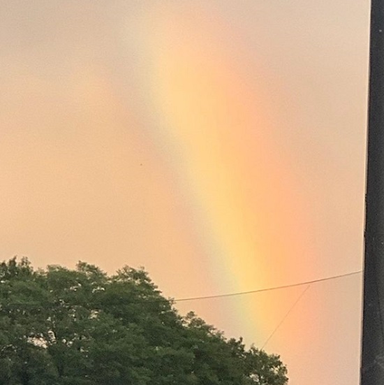 공개된 사진 속에는 노을 진 하늘에 떠있는 무지개가 담겼다.