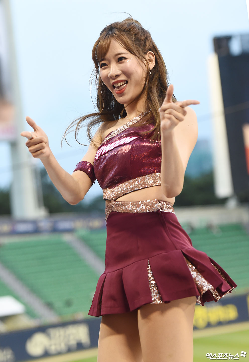 [엑스포츠뉴스 잠실, 박지영 기자] 30일 오후 서울 송파구 잠실야구장에서 열린 '2019 신한은행 MY CAR KBO리그' 키움 히어로즈와 LG 트윈스의 경기, 키움 치어리더 김한나가 멋진 공연을 선보이고 있다.