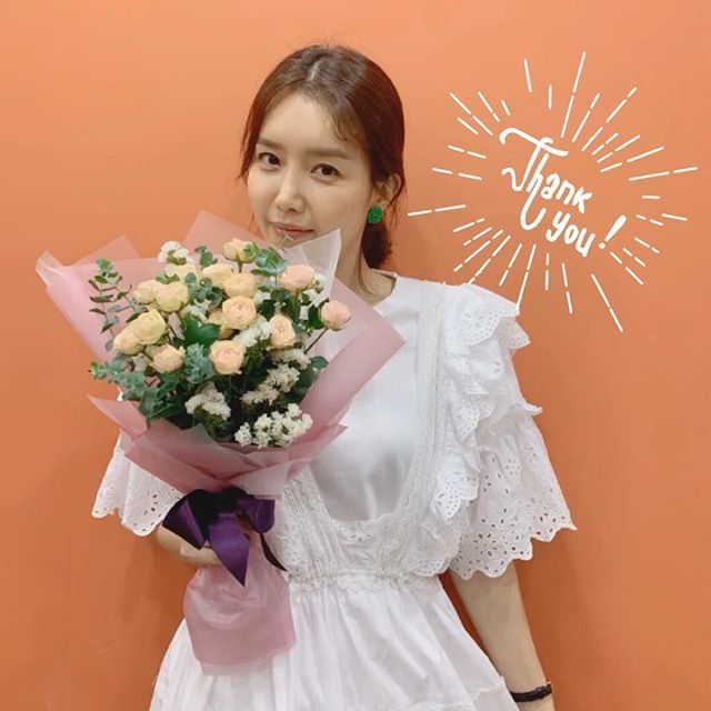 영상 속 차정원은 하얀 원피스에 초록색 귀걸이를 했고, 꽃다발을 든 차정원 옆으로 'Thank you!'라는 글자가 움직이고 있다.