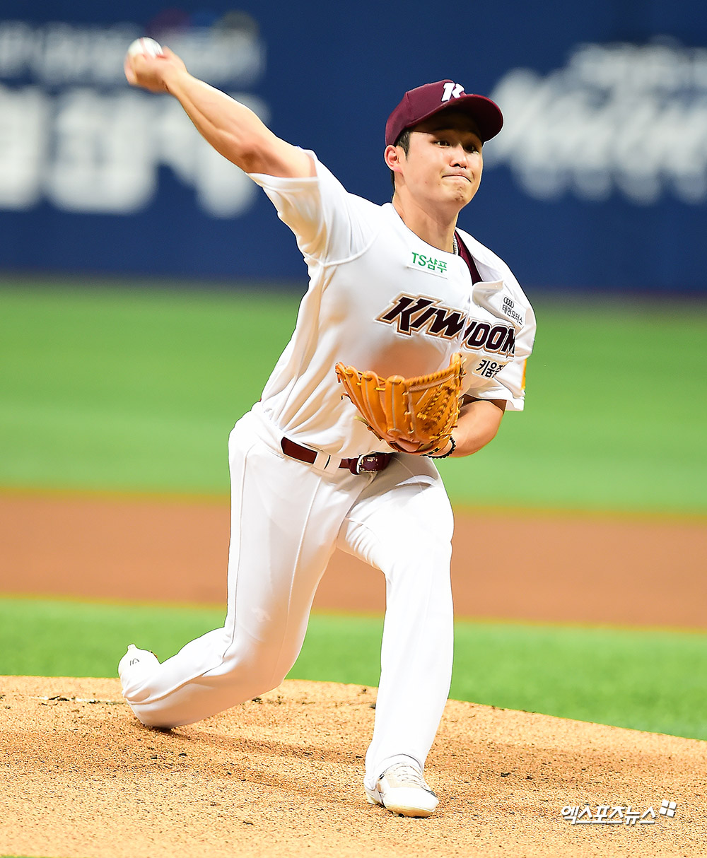[엑스포츠뉴스 고척, 김한준 기자] 3일 오후 서울 구로구 고척스카이돔에서 열린 '2019 신한은행 MY CAR KBO리그 KT 위즈와 키움 히어로즈의 경기, 1회초 키움 선발투수 최원태가 공을 힘차게 던지고 있다.