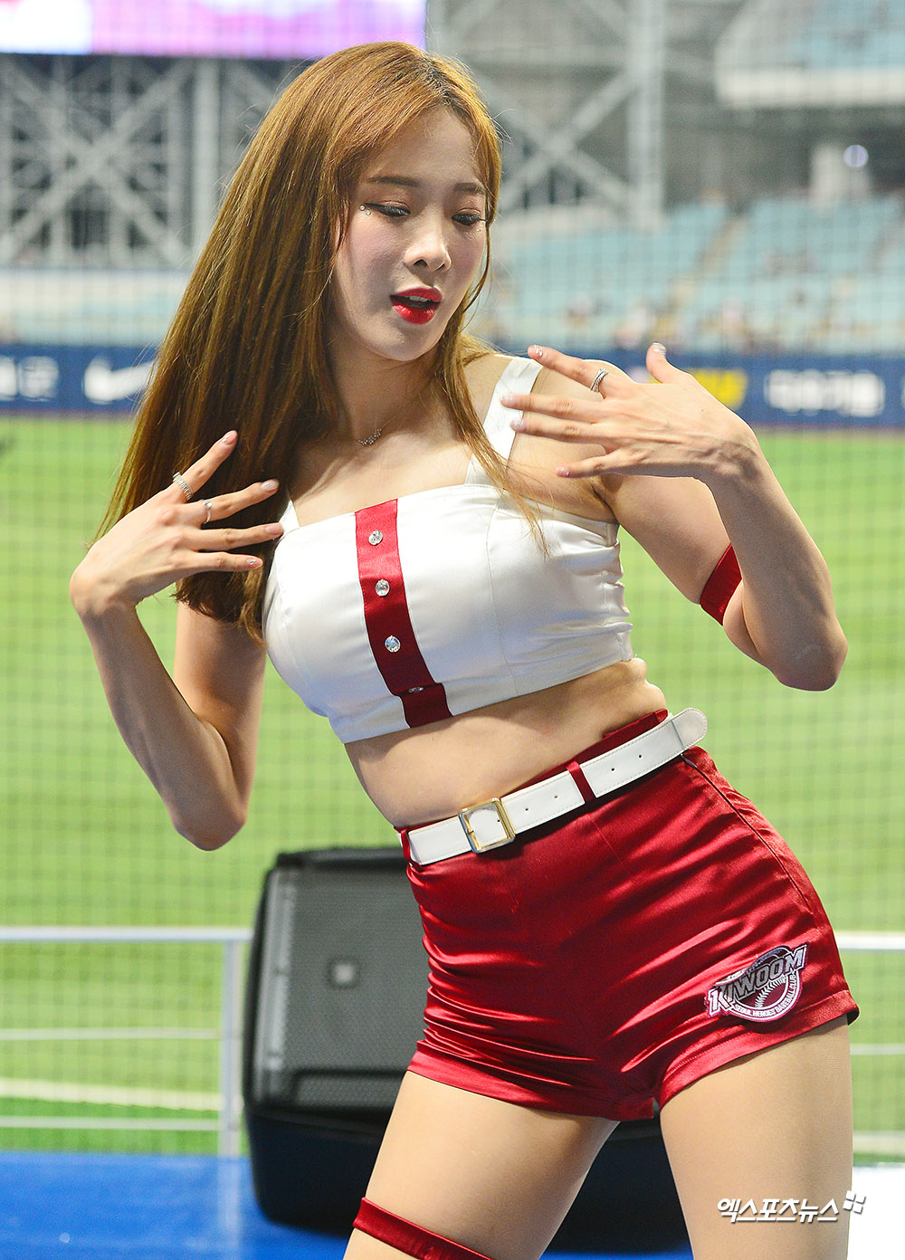 [엑스포츠뉴스 고척, 김한준 기자] 3일 오후 서울 구로구 고척스카이돔에서 열린 '2019 신한은행 MY CAR KBO리그 KT 위즈와 키움 히어로즈의 경기, 키움 치어리더 김한나가 멋진 공연을 선보이고 있다.