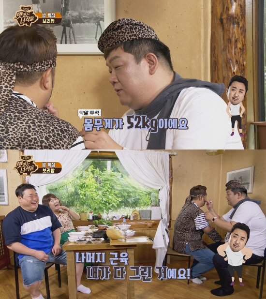 이어 유민상은 “마동석 씨가 원래 52kg이다. 나머지 근육 내가 그려준 거다”라고 말해 천재 화백다운 업적(?)으로 촬영장을 발칵 뒤집어 놓았다