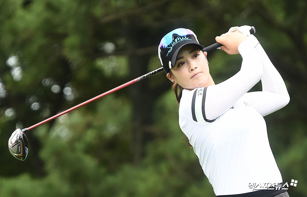 [엑스포츠뉴스 제주, 윤다희 기자] 10일 오전 제주시 오라 컨트리클럽(오라CC)에서 열린 ‘2019 한국여자프로골프(KLPGA)투어 제주 삼다수 마스터즈’ 2라운드 경기, 이날 박결(23, 삼일제약)이 5번홀로 티샷을 준비하고 있다.