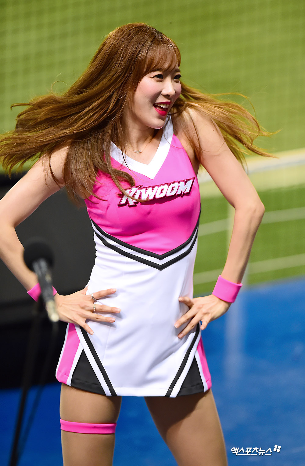 [엑스포츠뉴스 고척, 김한준 기자]10일 오후 서울 구로구 고척스카이돔에서 열린 '2019 신한은행 MY CAR KBO리그 두산 베어스와 키움 히어로즈의 경기, 키움 치어리더 김한나가 멋진 공연을 선보이고 있다.