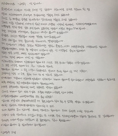 다음은 김명수가 쓴 자필편지 전문.