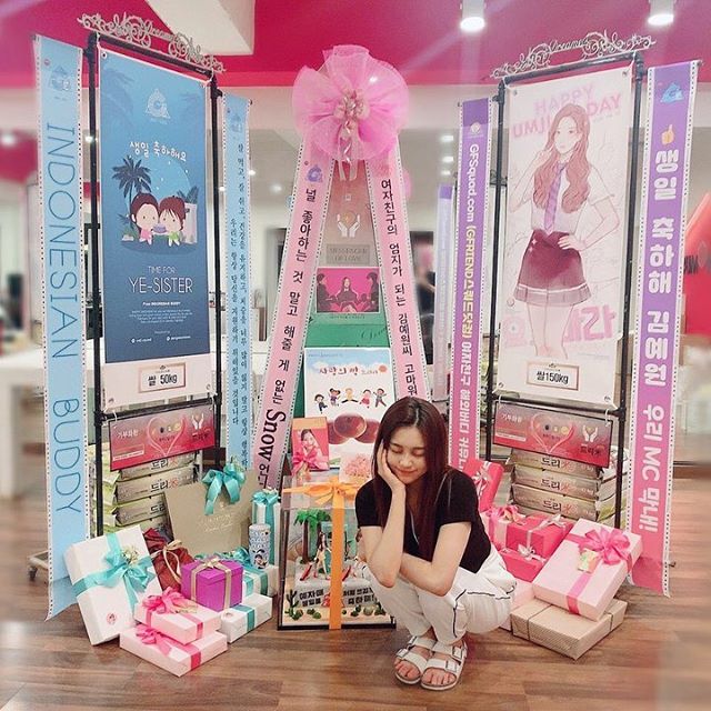 예린은 선물 앞에 쪼그려 앉은 채 턱을 괸 포즈를 취하고 있다. 예린은 "생일을 특별하게 만들어줘서 고마워요:) 버디가 보내준 마음으로 행복 가득 충전 #예린"이라고 적었다.