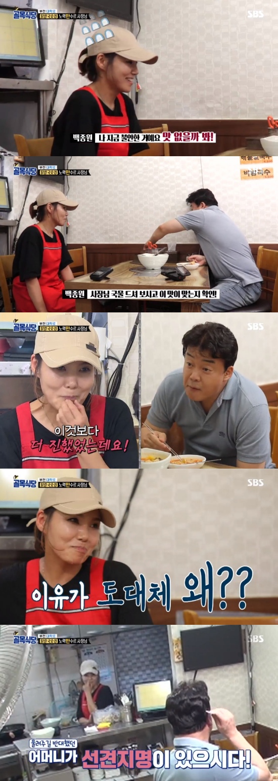28일 방송된 SBS '백종원의 골목식당'에서는 백종원이 닭칼국숫집 신메뉴를 평가하는 장면이 전파를 탔다.