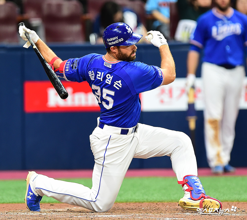 [엑스포츠뉴스 고척, 김한준 기자] 6일 오후 서울 구로구 고척스카이돔에서 열린 '2019 신한은행 MY CAR KBO리그' 삼성 라이온즈와 키움 히어로즈의 경기, 8회초 2사 1루 삼성 윌리엄슨이 헛스윙 삼진을 당하고 있다.