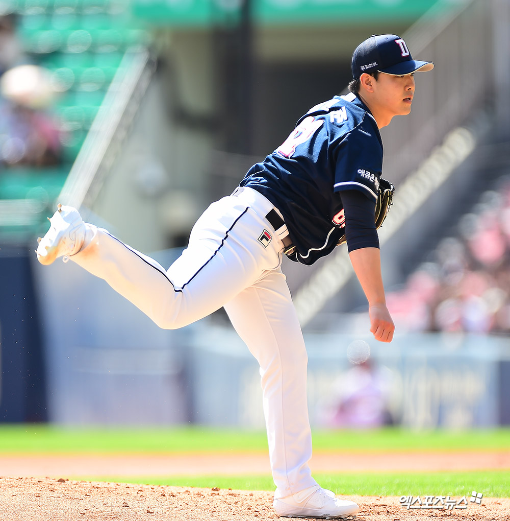 [엑스포츠뉴스 잠실, 김한준 기자] 15일 오후 서울 송파구 잠실야구장에서 열린 '2019 신한은행 MY CAR KBO리그' 두산 베어스와 LG 트윈스의 경기, 1회말 두산 선발투수 최원준이 공을 힘차게 던지고 있다.