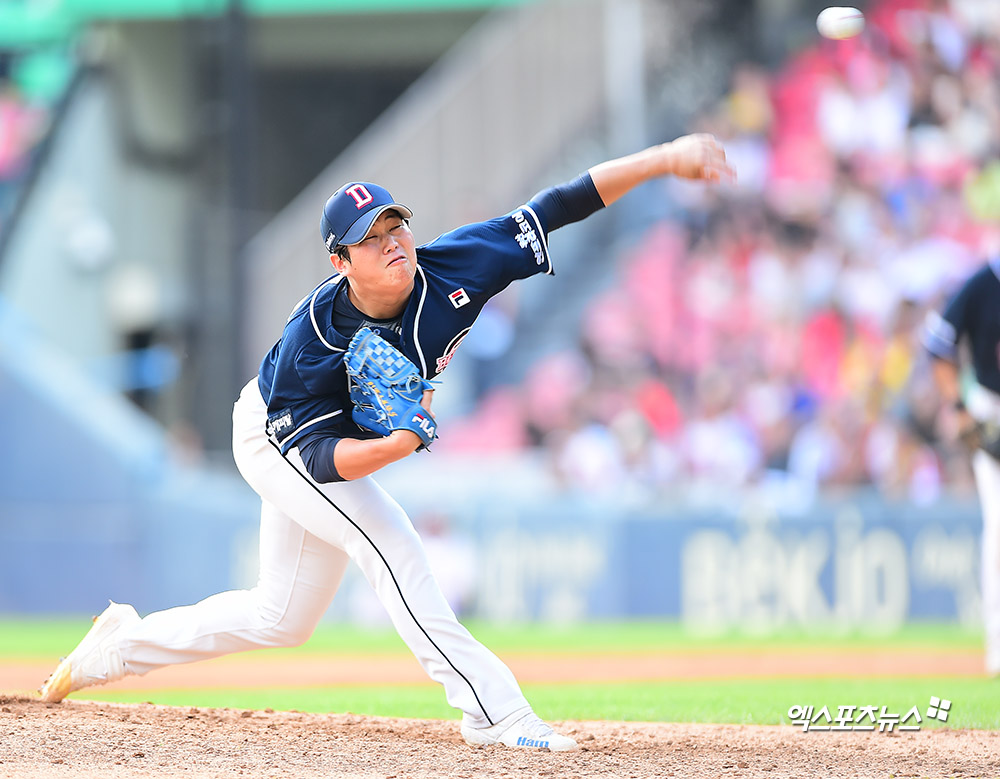 [엑스포츠뉴스 잠실, 김한준 기자] 15일 오후 서울 송파구 잠실야구장에서 열린 '2019 신한은행 MY CAR KBO리그' 두산 베어스와 LG 트윈스의 경기, 5회말 두산 함덕주가 공을 힘차게 던지고 있다.