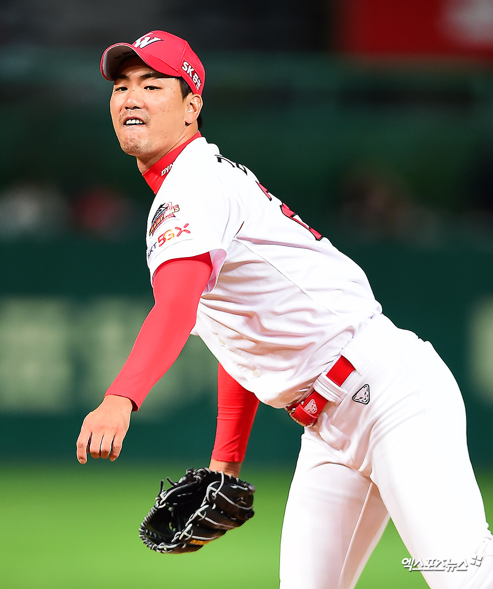 [엑스포츠뉴스 인천, 김한준 기자] 19일 오후 인천SK행복드림구장에서 열린 '2019 신한은행 MY CAR KBO리그' 두산 베어스와 SK 와이번스의 더블헤더 2차전 경기, 1회초 SK 선발투수 김광현이 공을 힘차게 던지고 있다.