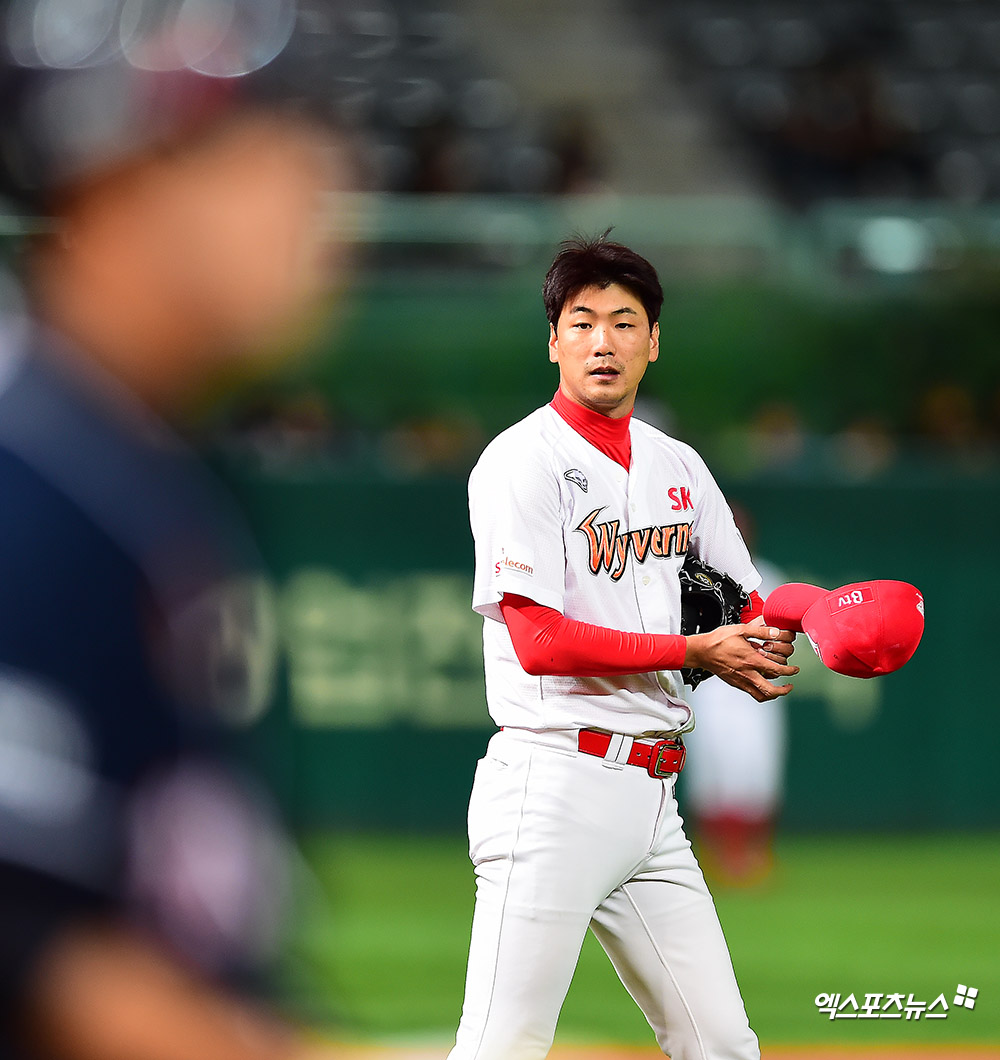 [엑스포츠뉴스 인천, 김한준 기자] 19일 오후 인천SK행복드림구장에서 열린 '2019 신한은행 MY CAR KBO리그' 두산 베어스와 SK 와이번스의 더블헤더 2차전 경기, 1회초 SK 선발투수 김광현이 투구 준비를 하고 있다.
