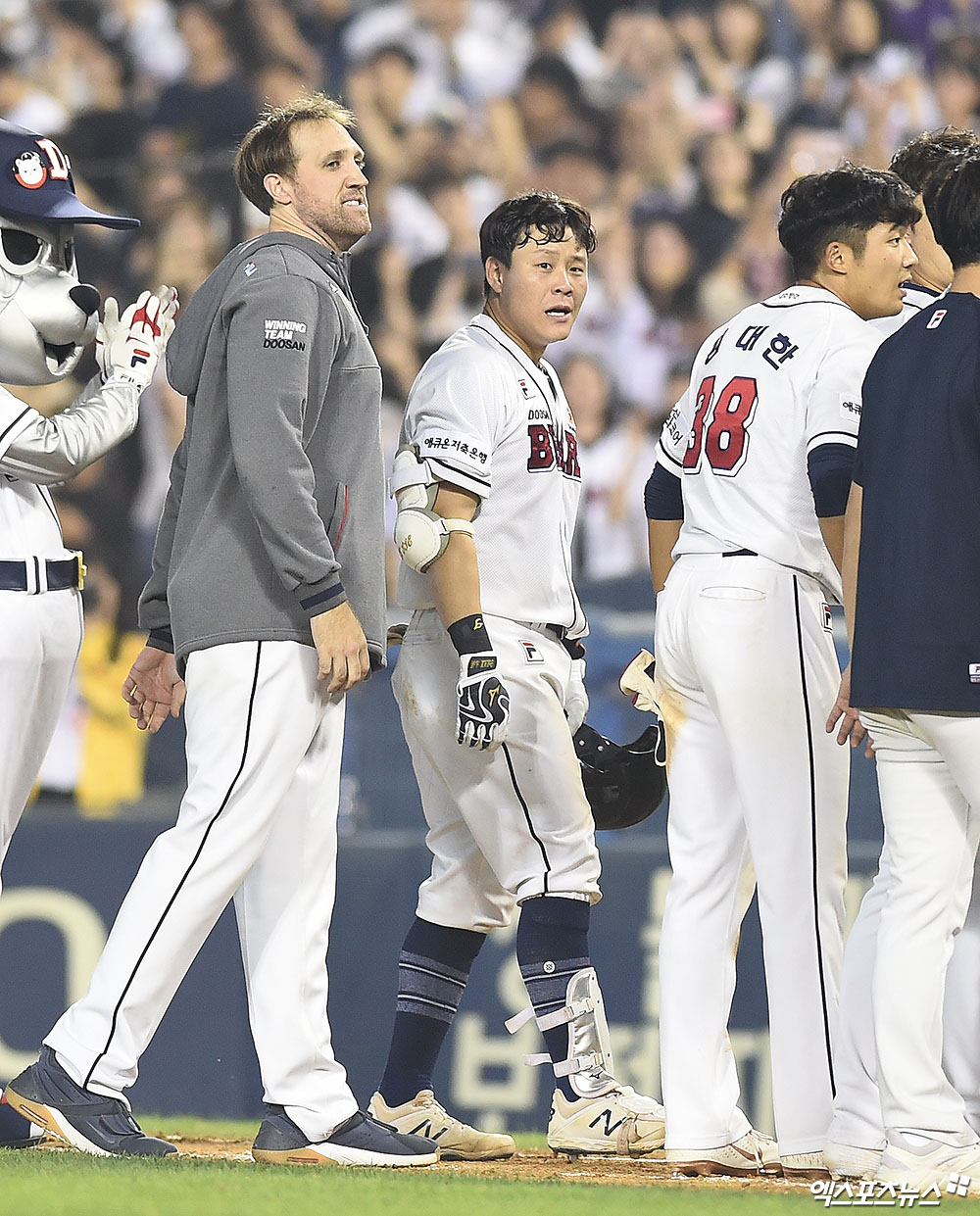 [엑스포츠뉴스 잠실, 박지영 기자] 1일 오후 서울 송파구 잠실야구장에서 열린 '2019 신한은행 MY CAR KBO리그' NC 다이노스와 두산 베어스의 경기, 두산 베어스가 치열한 접전 끝에 9회말 터진 박세혁의 끝내기 안타로 NC 다이노스에게 6:5의 스코어로 승리를 거두며 정규 시즌 우승을 확정했다.