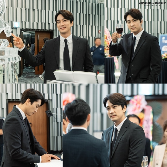 2일 소속사 킹콩 by 스타쉽 측은 tvN 월화드라마 ‘위대한 쇼’에서 위대한 역으로 활약을 펼치고 있는 송승헌의 촬영 현장 비하인드 사진을 여러 장 공개했다.