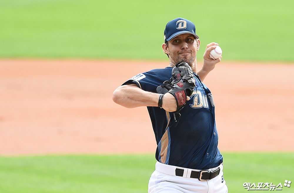 [엑스포츠뉴스 잠실, 박지영 기자] 3일 오후 서울 송파구 잠실야구장에서 열린 '2019 신한은행 MY CAR KBO 포스트시즌' NC 다이노스와 LG 트윈스의 와일드카드 결정전 1차전 경기, 1회말 무사 NC 선발투수 프리드릭이 역투하고 있다.