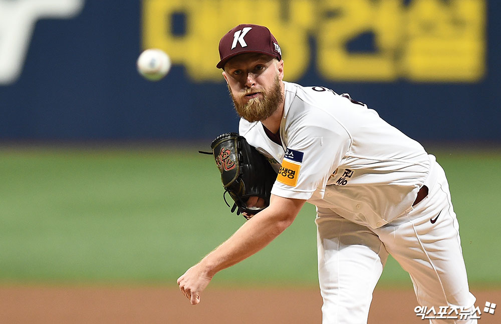 [엑스포츠뉴스 고척, 박지영 기자] 7일 오후 서울 구로구 고척스카이돔에서 열린 '2019 신한은행 MY CAR KBO 포스트시즌' LG 트윈스와 키움 히어로즈의 준플레이오프 2차전 경기, 1회초 무사 키움 선발투수 요키시가 역투하고 있다.