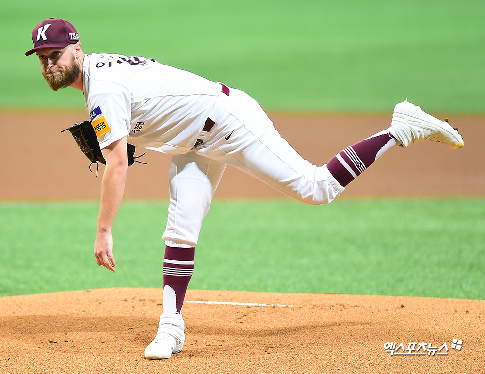 [엑스포츠뉴스 고척, 김한준 기자] 17일 오후 서울 구로구 고척스카이돔에서 열린 '2019 신한은행 MY CAR KBO 포스트시즌' SK 와이번스와 키움 히어로즈의 플레이오프 3차전 경기, 1회초 키움 선발투수 요키시가 공을 힘차게 던지고 있다.