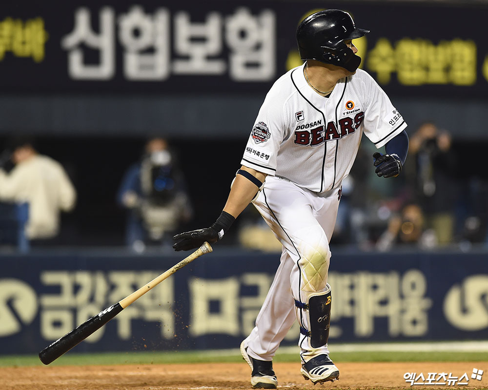 [엑스포츠뉴스 잠실, 박지영 기자] 22일 오후 서울 송파구 잠실야구장에서 열린 '2019 신한은행 MY CAR KBO 포스트시즌' 키움 히어로즈와 두산 베어스의 한국시리즈 1차전 경기, 접전 끝에 두산 베어스가 9회말 오재일의 끝내기 안타에 힘입어 키움 히어로즈에게 7:6의 스코어로 승리를 거두었다.